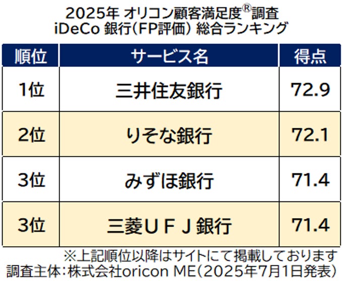 『iDeCo 銀行(FP評価)』 https://life.oricon.co.jp/rank-ideco/#2