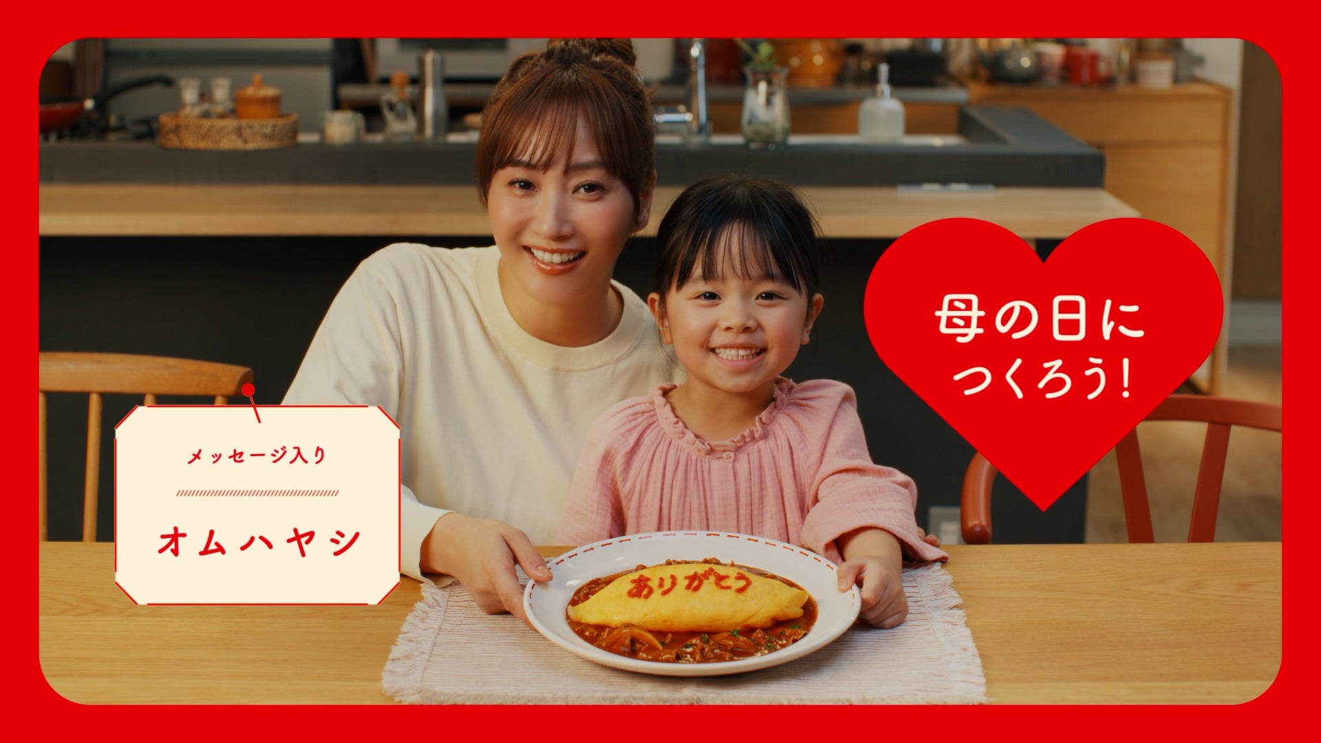 また、「完熟トマトのハヤシライスソース」を始め、ハヤシライスが食卓に上がりやすい「母の日」シーズンには、記念日におすすめのアレンジレシピ「メッセージ入りオムハヤシ」もTVCM内で合わせて紹介します。