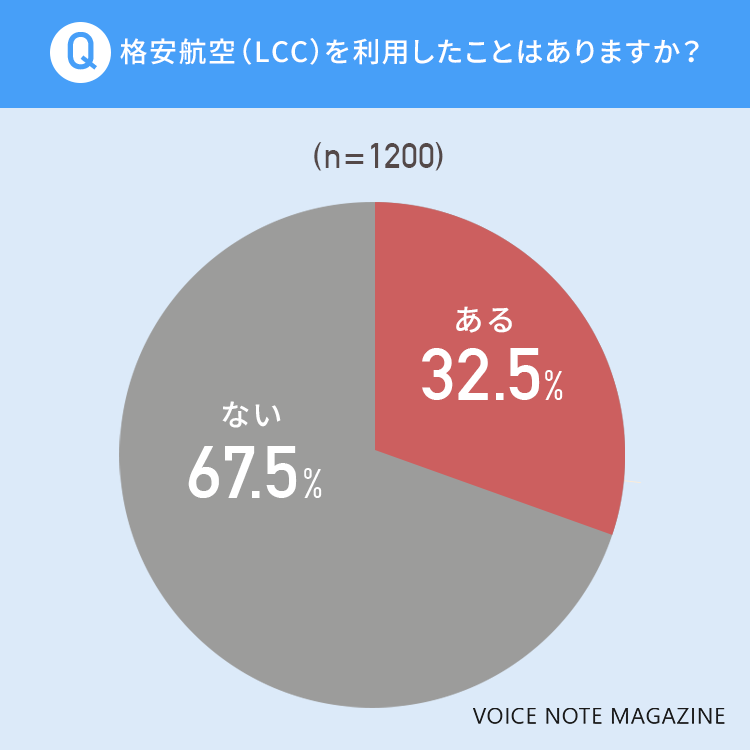 また、運賃が安い格安航空(LCC)を利用したことがあるかについて聞いたところ、以下のような結果になりました。
