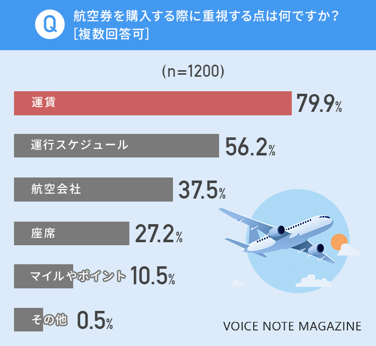 実際に、航空券を購入する際に重視する点についても聞いてみました。