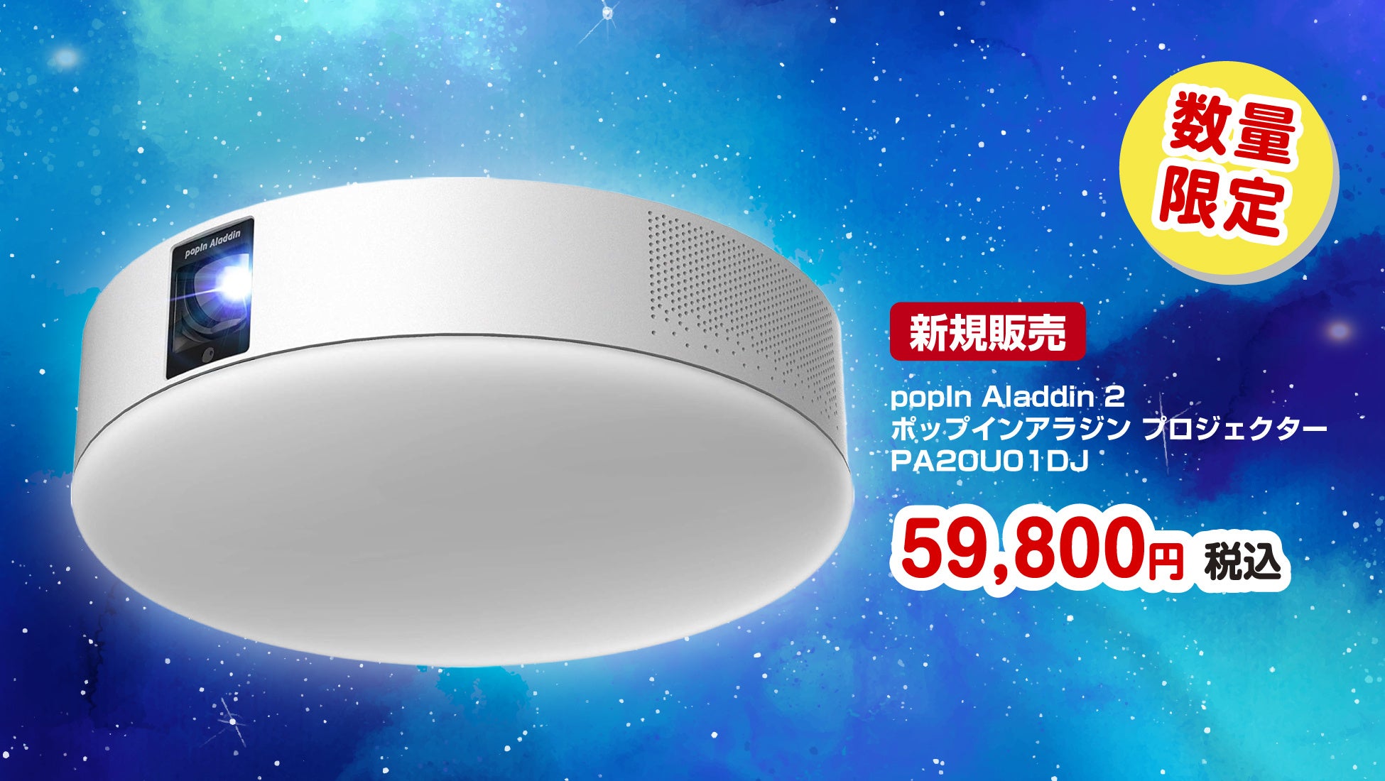 楽天市場「Show !t」では、大人気プロジェクター「popIn Aladdin 2」を数量限定で販売中です。流通していた商品をメーカーが回収し、外装交換と動作確認を行ったリニューアル品で、外観も新しく、動作も正常です。この機会をお見逃しなく。