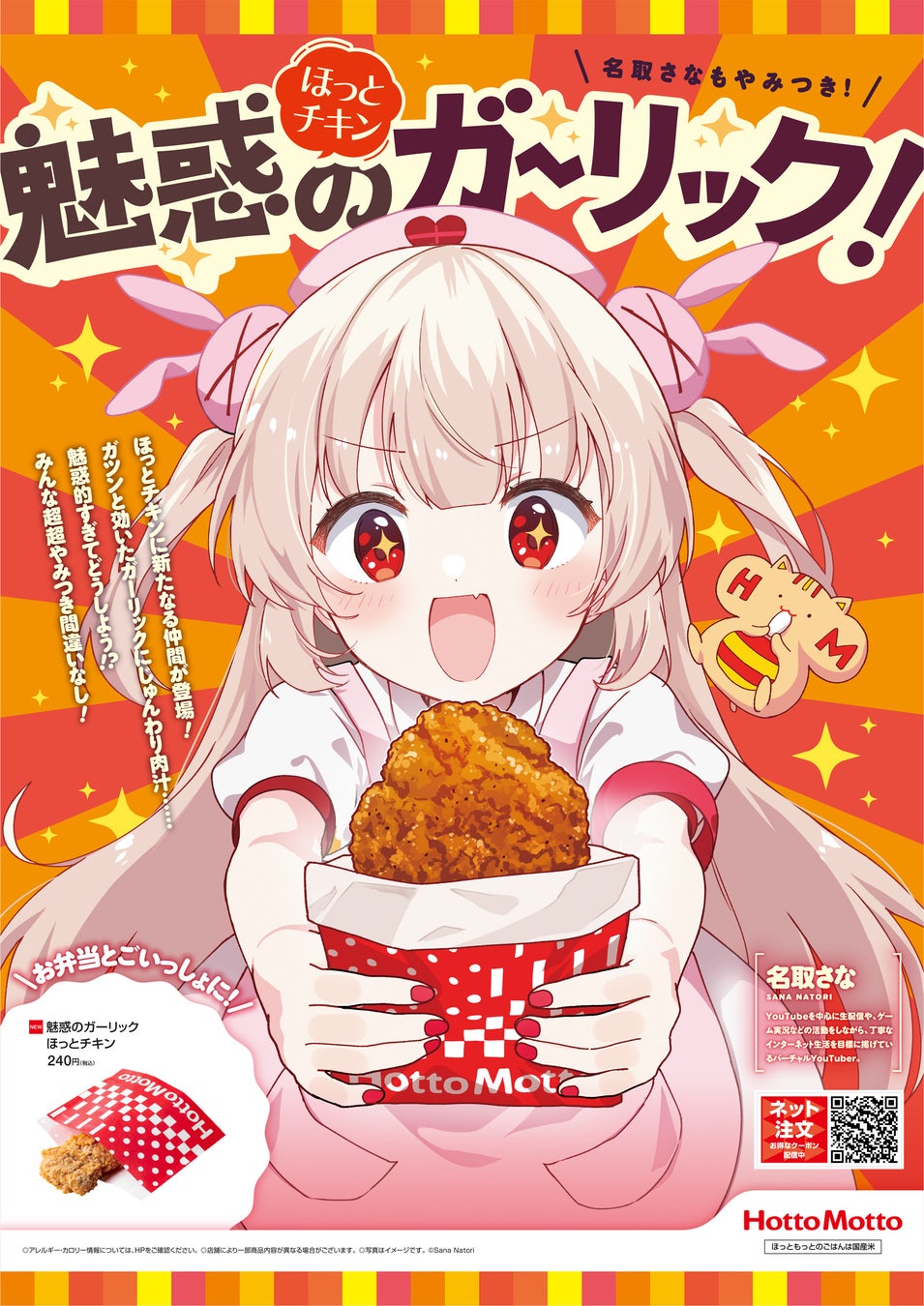 このたび「ほっともっと」では、7月17日(水)より『魅惑のガーリック ほっとチキン』の発売を記念し、YouTube登録者数36.8万人※1を誇る大人気VTuber「名取さな」とのコラボキャンペーンを実施いたします。