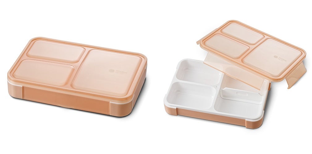 1段でも中容器を合わせて2段でも使える、便利な2WAY仕様の弁当箱。最大の特徴は、パッキンの取り外しが不要で、角が丸く部品も少ない「時短洗い」設計。食洗機にも対応しています。機能面も充実しており、汁もれしにくいパッキン付きながら、フタを押すだけのワンタッチロックで開閉も簡単です。