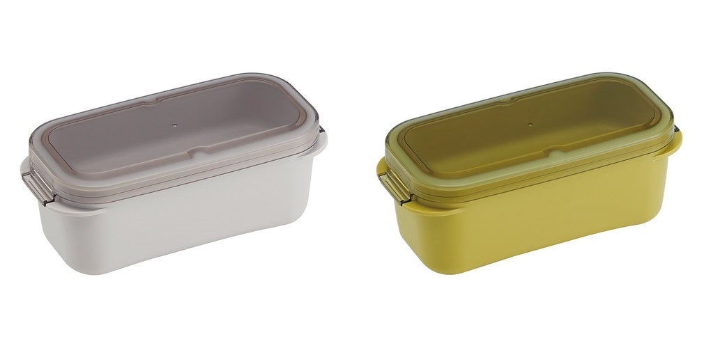 バッグにすっきり収まるA4サイズの薄型弁当箱「フードマン」から爽やかなハンズ限定カラーが登場。厚さわずか3.5cmで、独自のWシーリング構造により「立てて運んでも汁漏れしにくい」のが最大の特徴です。パッキン一体型の蓋は汚れが溜まりにくく、食洗機対応でお手入れも簡単。内側には仕切りがあるため、詰めるだけで盛り付けが完成し、蓋を外せばレンジ加熱も可能です。