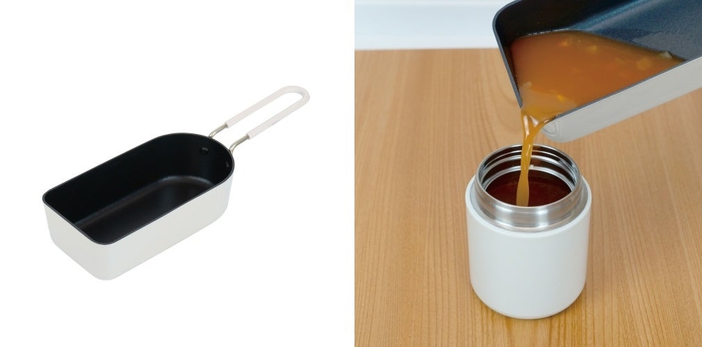 卵焼きや少量の炒め物、スープ作りまで幅広くこなします。注ぎ口の様な角でスープや小さな容器への移し替えもスムーズ。使用後は、キッチンツールと一緒にスッキリ吊り下げ収納。朝食やお弁当作り等、一人暮らしの忙しい朝に重宝する一台です。