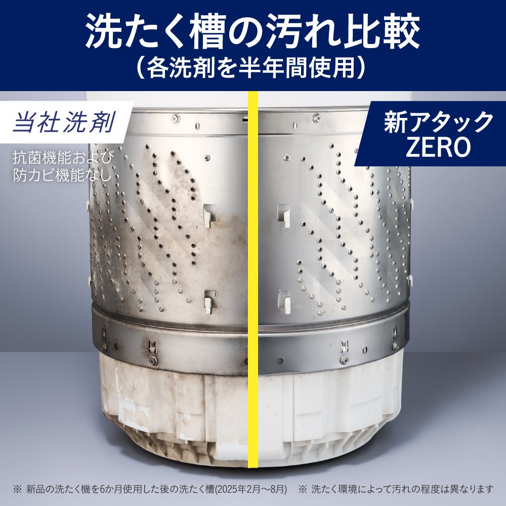衣類から洗たく槽まで「アタック ZERO」液体史上 最高峰の消臭 新洗浄技術により、いつものお洗たくで“洗たく槽のメンテフリー*1”を実現