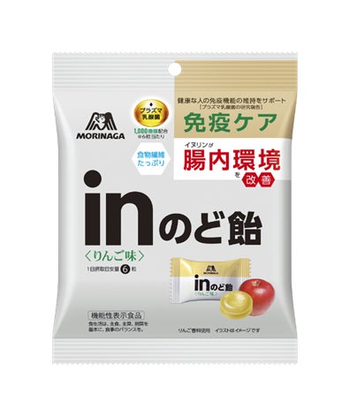 免疫ケアに加え、腸内環境改善もサポート!ダブルヘルスクレームの機能性表示食品「inのど飴<りんご味>」をリニューアル!