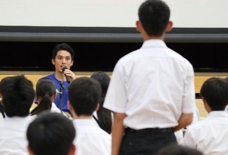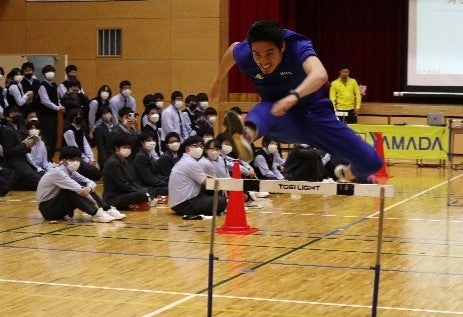 東京五輪400mH に出場経験のあるヤマダホールディングス陸上競技部の元選手、安部孝駿が講師を務め、これまでの選手生活における様々な経験や目標を叶えるための信念について講演しました。