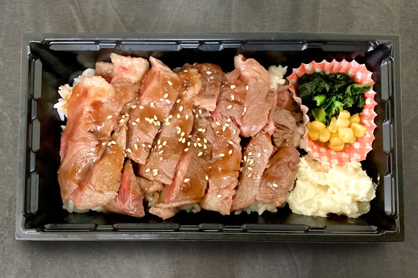 看板商品の「焼きすき弁当」(1,580円)は、黒毛和牛を100%使用した贅沢な弁当です。和牛の甘みとジューシーな味わいを十分に残し、食べやすい味付けに仕上げました。