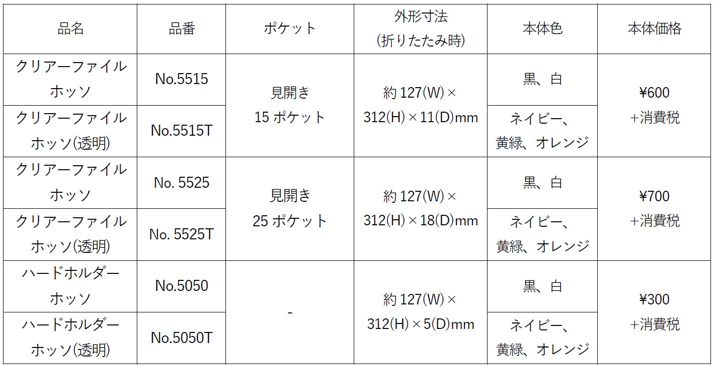 価格 :No.5515/5515T(見開き15ポケット)¥600+消費税
