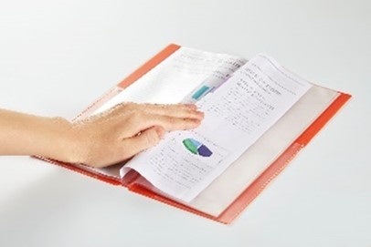 パラパラと本をめくるように閲覧しやすい「クリアーファイル ホッソ」は、閉じても開いても、