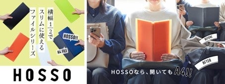 株式会社キングジム(本社:東京都千代田区 代表取締役社長:木村 美代子)は、横幅1/2でスリムに使えるファイルシリーズ「HOSSO(ホッソ)」(https://www.kingjim.co.jp/sp/hosso/、以下「ホッソ」)を2025年5月28日(水)より発売します。初年度販売目標数量は12万冊です。