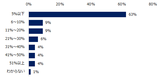 女性管理職比率を伺うと、63%の中小企業が「5%以下」と回答しました。政府が掲げる目標である「30%以上」と回答した企業は12%に留まりました(31~40%:4%、41~50%:4%、51%以上:4%)。