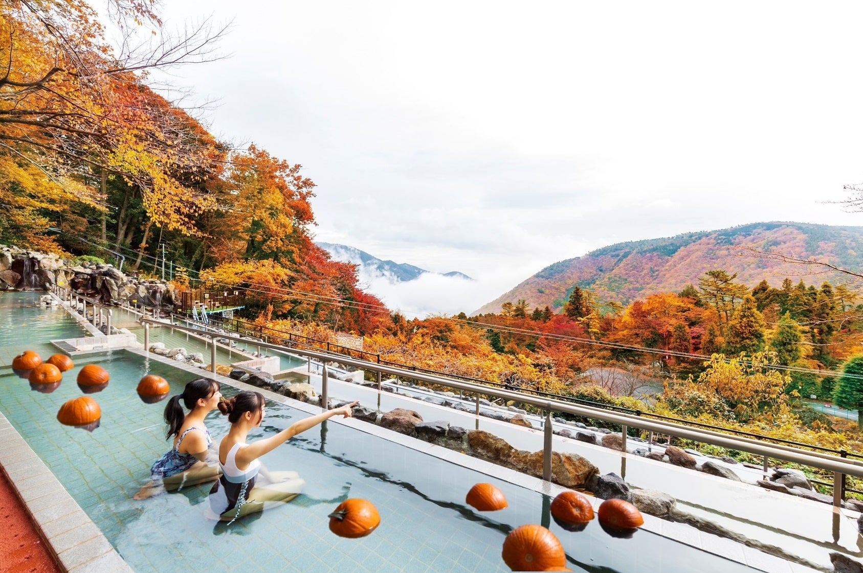 肌寒くなるこれからの時期はユネッサンがおすすめ。ハロウィーンなどの季節風呂をはじめ、名物のワイン風呂や本格コーヒー風呂などの変わり風呂を水着でお楽しみいただきながら、身体の芯まで温まることが出来ます。また、この期間は館内混雑がなくゆったりと利用でき、昨年新設された流れるプール「ボザッピィリバー」は屋内のため、雨天時や気温が下がった日も安心してお楽しみいただけます。
