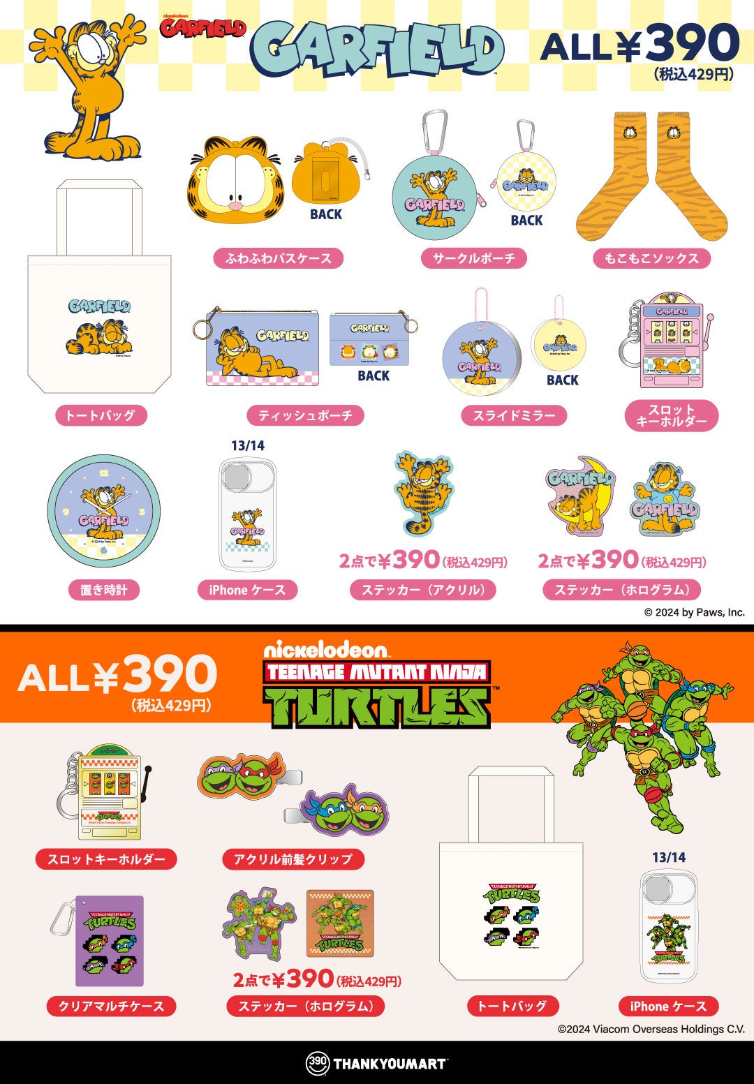 アメリカの大人気アニメ「ガーフィールド」「ミュータント タートルズ」「ビーバス・アンド・バットヘッド」「サウスパーク」とのコラボ雑貨がサンキューマートより新発売!