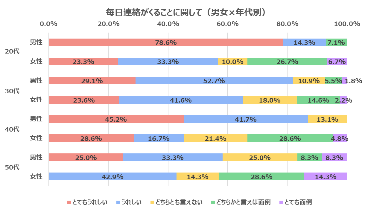 - 20代男性の9割以上が、毎日連絡がくると「とてもうれしい」「うれしい」