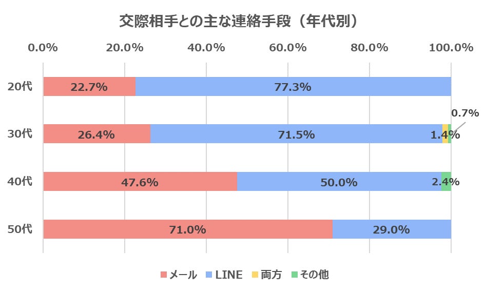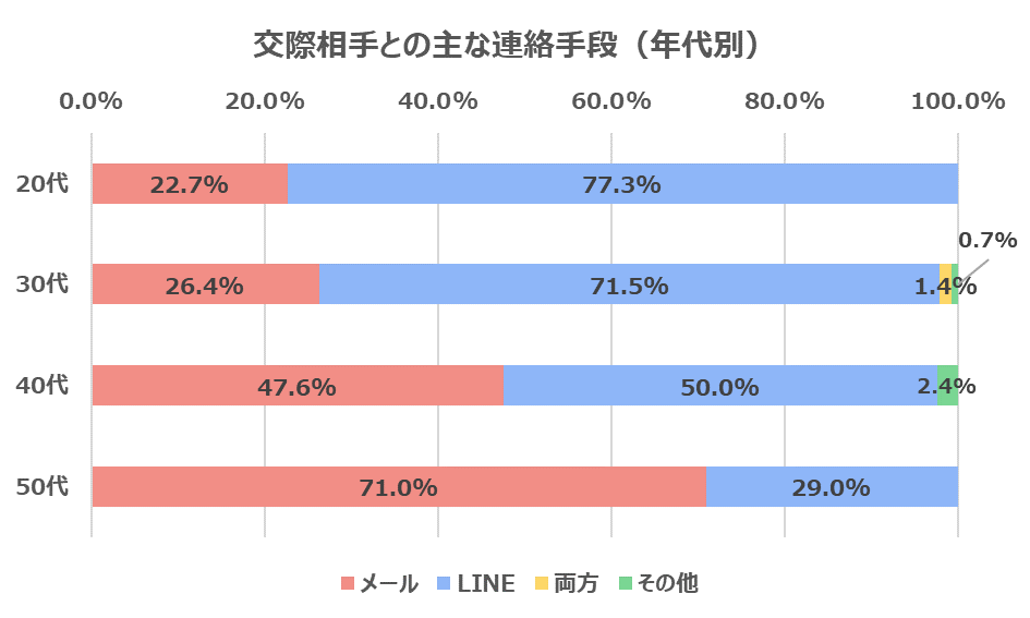- 交際相手とのやり取り、20代の7割以上がLINEを使用