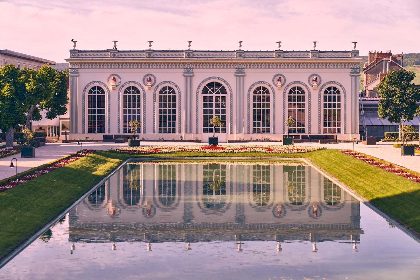 今では多くのシャンパーニュメゾンが建ち並ぶ、エペルネの町の中心からのびる目抜き通り、アヴェニュー・ド・シャンパーニュに最初に建てられたのは、モエ・エ・シャンドン メゾンでした。この日山下さんが最初に訪れたのは、レジダンス・デュ・トリアノン。エペルネの市長も務めた3代目当主、ジャン・レミー・モエが建てた邸宅には、広い庭園とオランジェリー(迎賓館)があります。