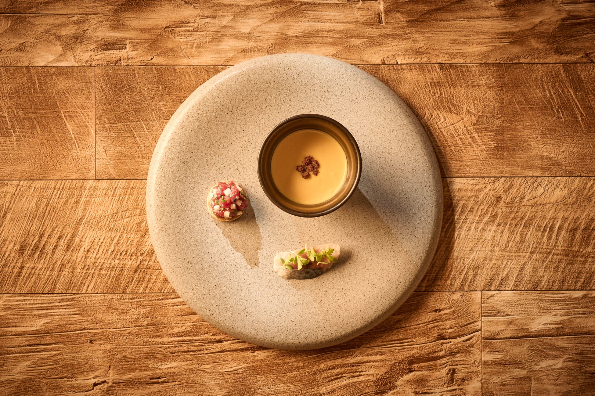 秋の恵みをたっぷりと受けた食材を使用したアミューズ3点盛り