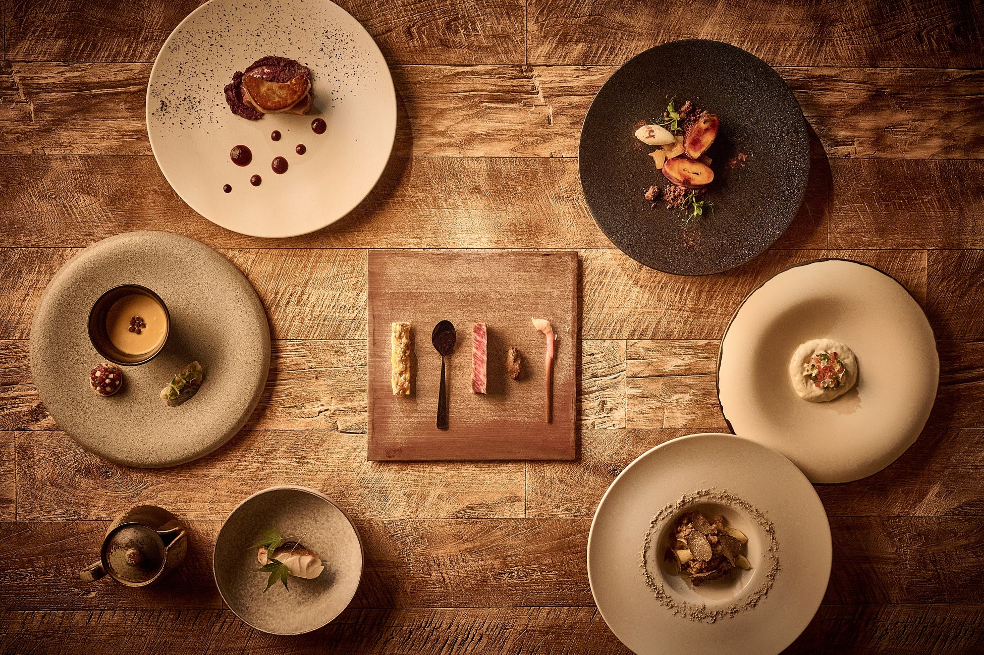 食感、香りに重きを置き、葉山の地と季節が織り成す郷愁をストーリー仕立てのフルコースにしました。希少な滋味を愉しむ秋ならではのお食事のひとときをお過ごしください。