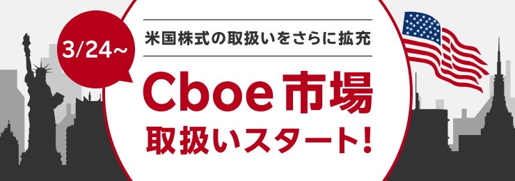 楽天証券株式会社(本社:東京都港区、代表取締役社長:楠 雄治、以下「楽天証券」)は、2025年3月24日(月)15時(日本時間)注文分より、シカゴ・オプション取引所(以下「Cboe」)に単独上場する米国ETF、23銘柄の取扱いを開始することをお知らせします。これにより、市場動向やお客様の投資目的、リスク許容度にあわせて、より幅広い銘柄への投資が可能になります。