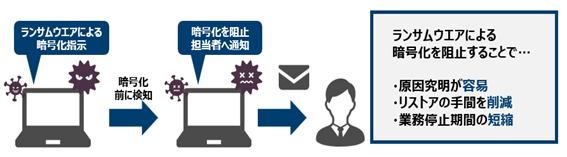 他社製のアンチウイルスソフトや「EDR(エンドポイント検知・対応)」と呼ばれる不正アクセス検知サービスと併用可能。既存のセキュリティー環境を維持したまま、ランサムウエア対策を強化できる