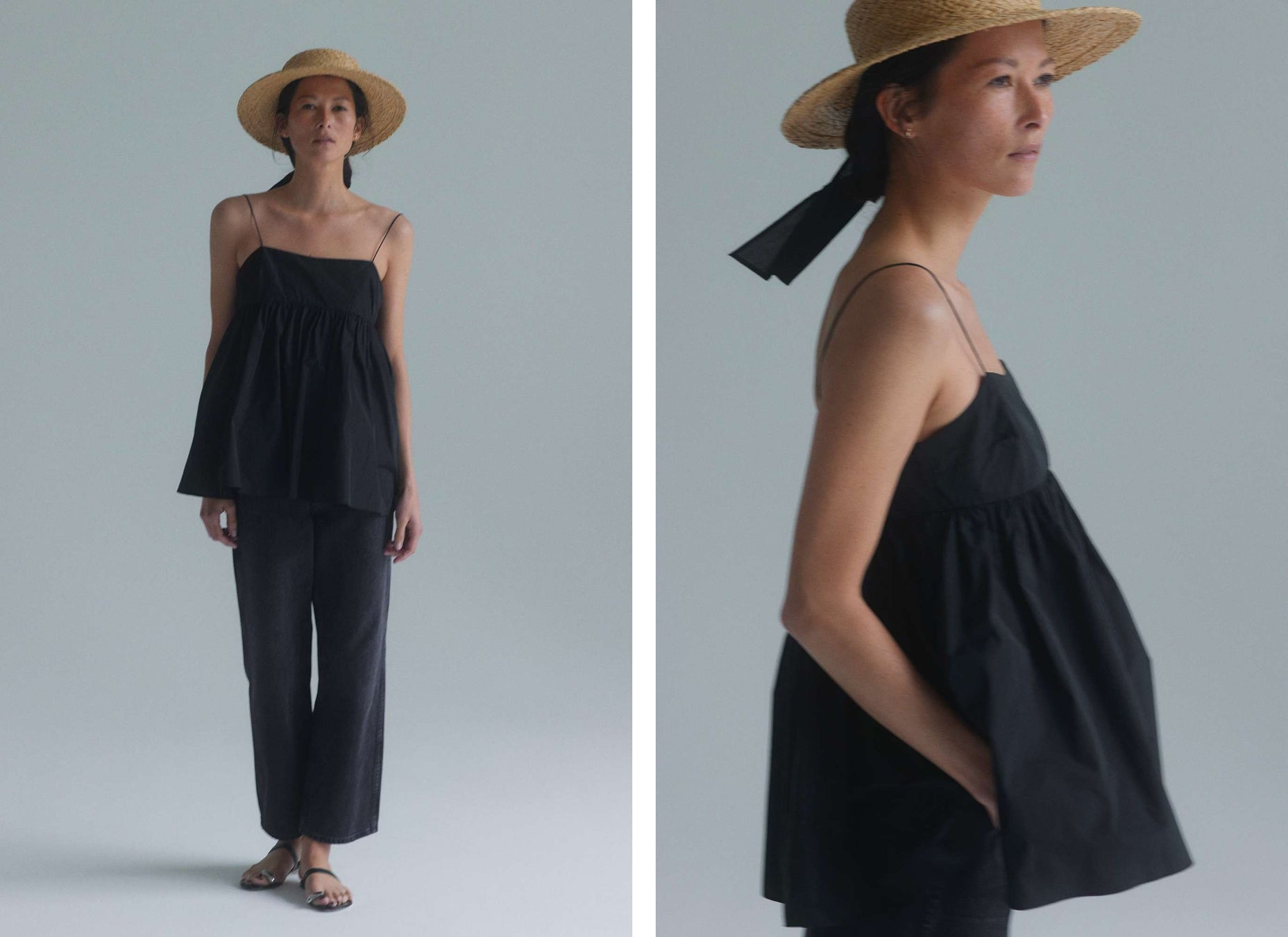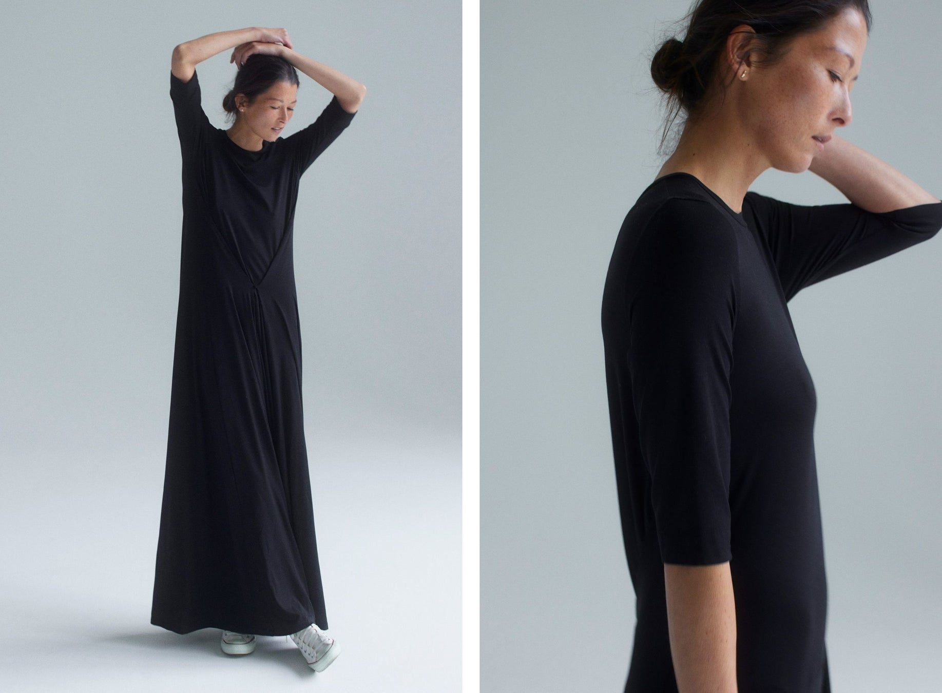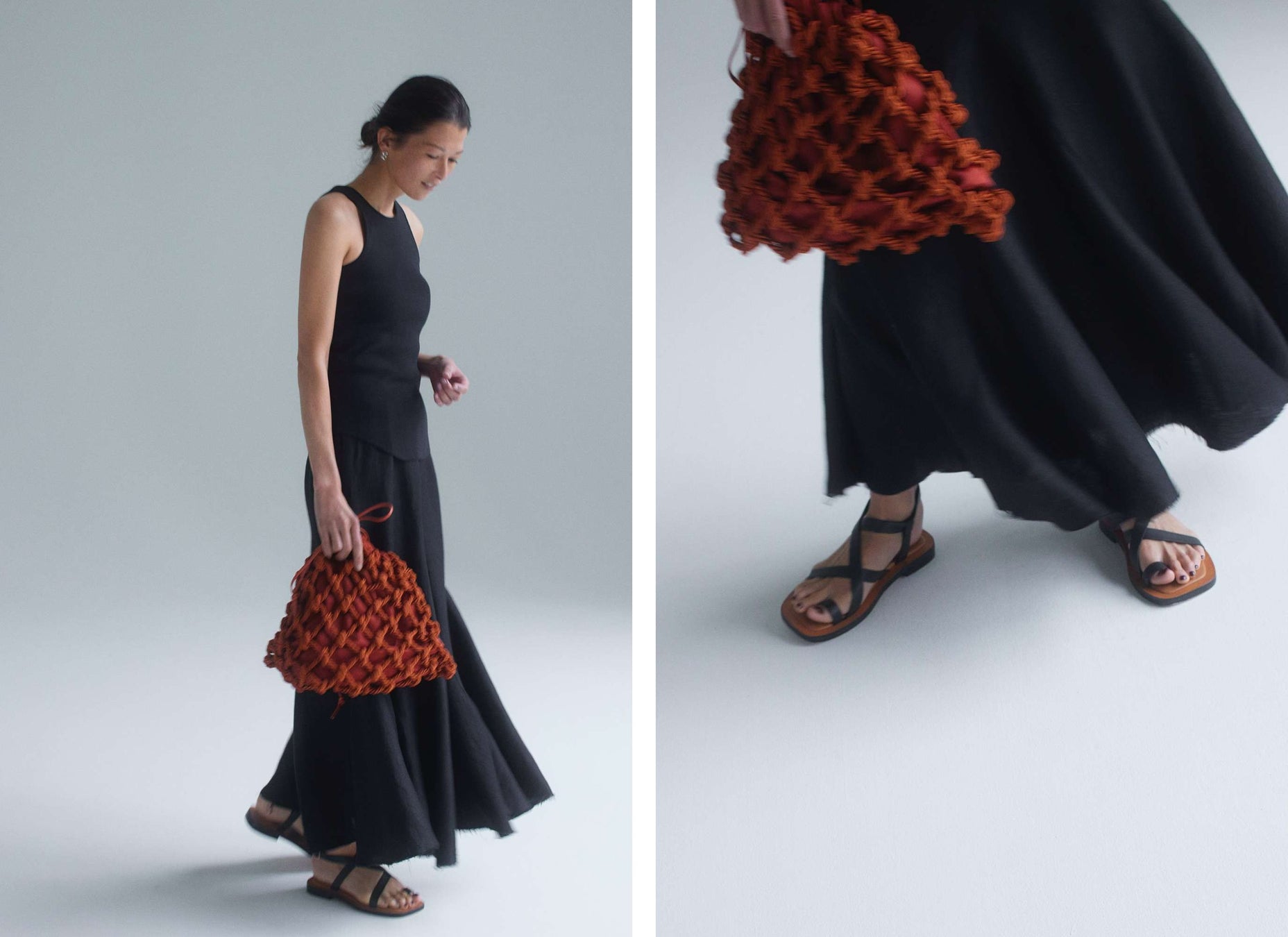 「「軽やかな黒」は、少しドライで少し透ける素材だからこそ表現できる。甘さのあるシルエットを、たっぷりとした分量で楽しんで。今はまだ自由に行かれない、「旅先の景色」にも似合う――そんな黒。」
