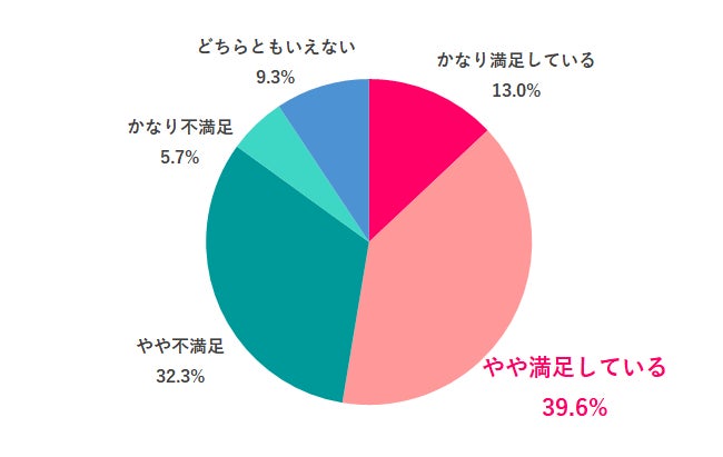 「かなり満足している」「やや満足している」を含む満足派は52.6%で、「かなり不満足」「やや不満足」を含む不満派の38%を上回る結果となりました。