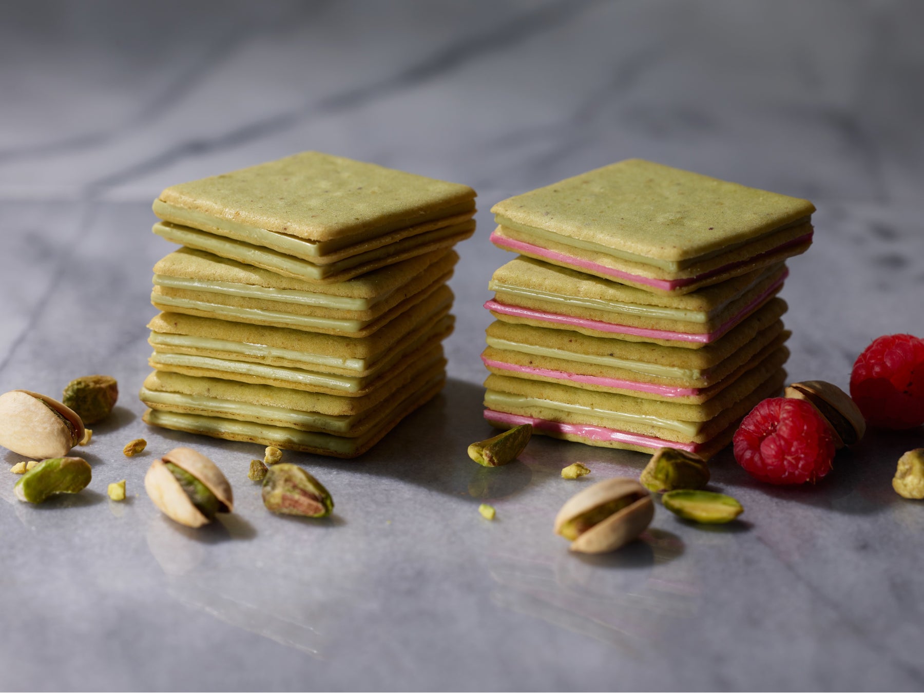 5層のサンド「ピスタチオ&ピスタオ」とフランボワーズチョコレートをプラスした「ピスタチオ&フランボワーズ」の詰め合わせです。