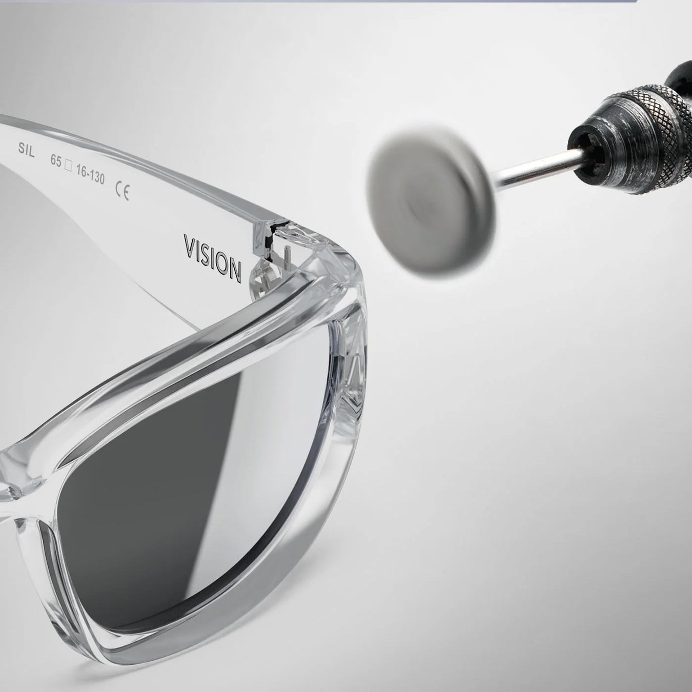 「ビジョン」は、細いキャットアイの形状を採用し、洗練されたクリアフレームとミラードシルバーレンズが全体のデザインを引き立て、ユニークな存在感を醸し出します。ユニセックススタイルにより、どんな服装にもマッチし、幅広いシーンでお楽しみいただけます。