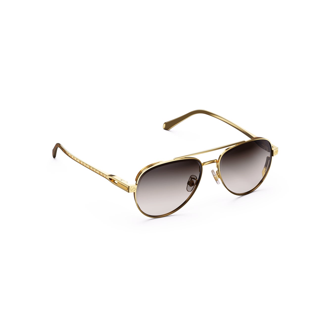 時計や宝飾品などに使われるギローシュ技法を採用し、テンプルにモノグラムパターンを施すことで、エレガンスとユニークさを追求しました。パターンがテンプルから先端にかけて滑らかに流れ、全体のデザインを一層引き立てています。