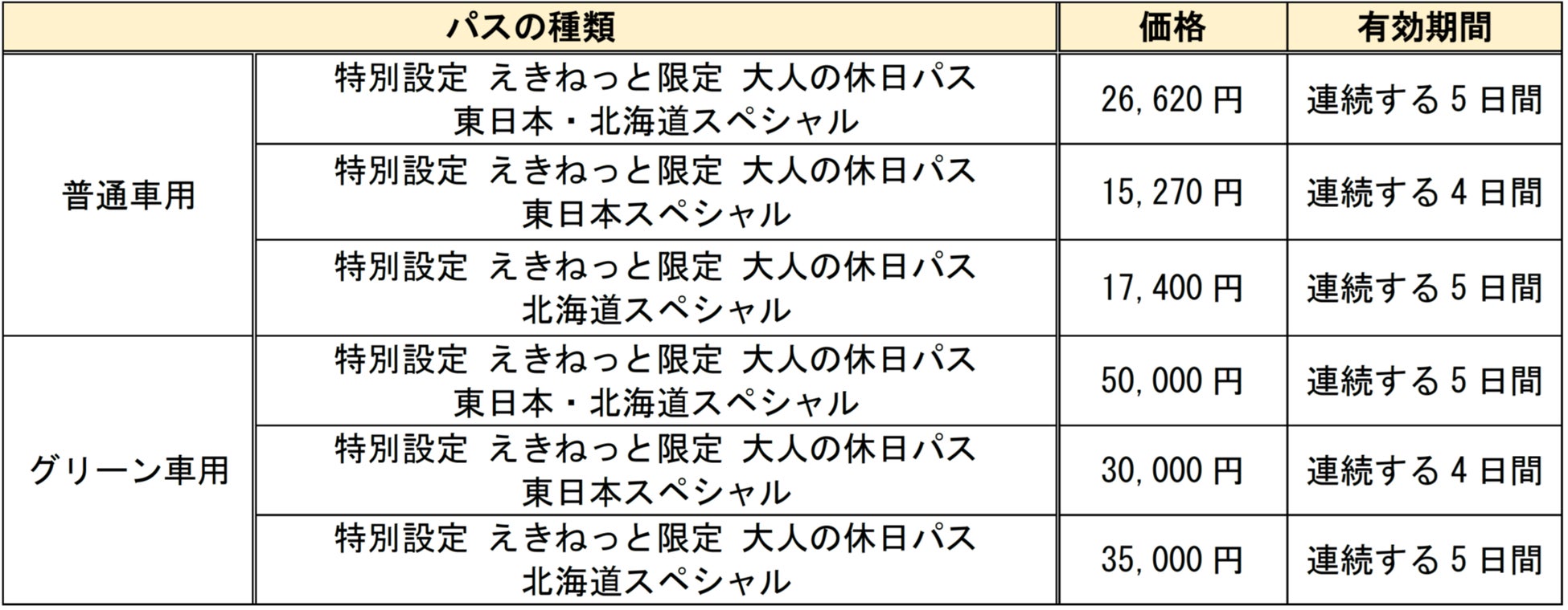 「特別設定 えきねっと限定 大人の休日パス スペシャル」