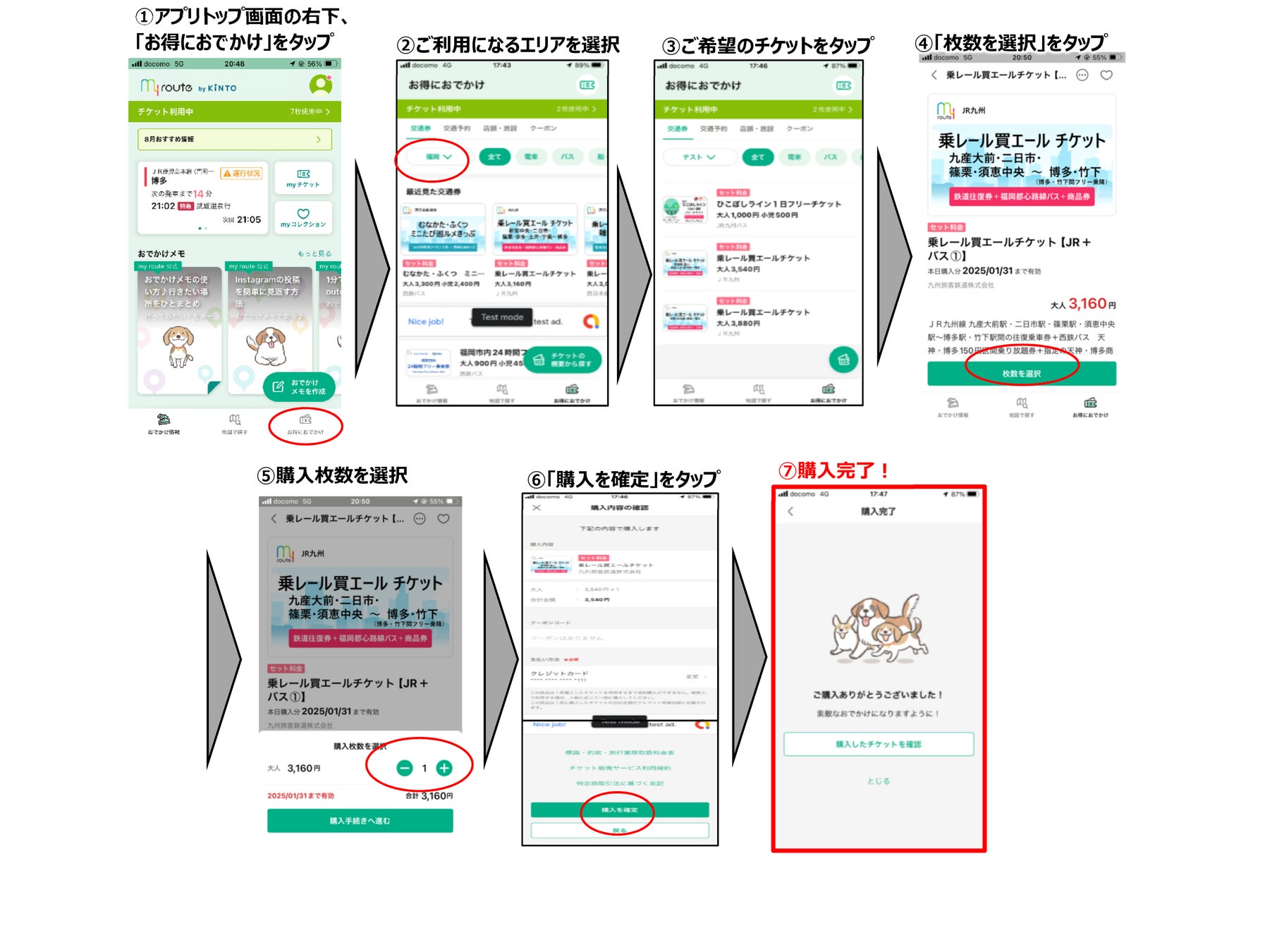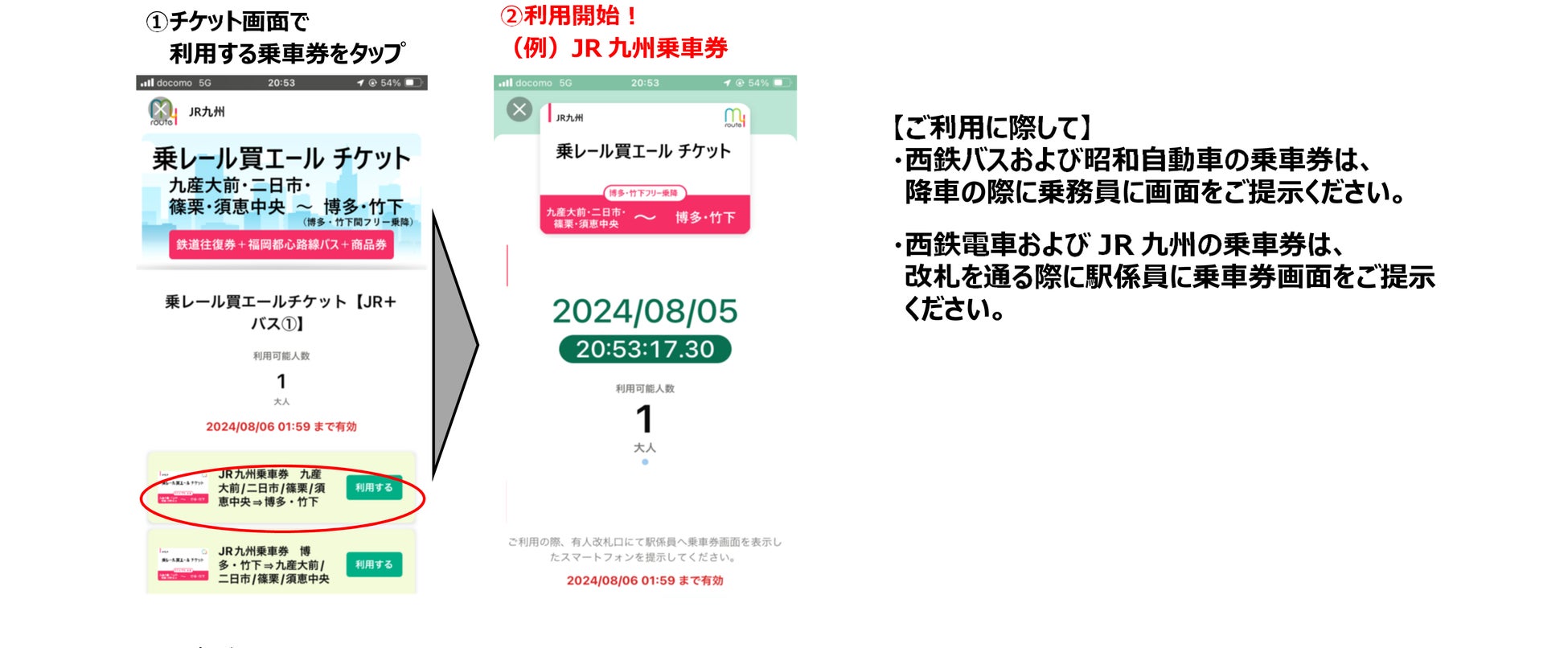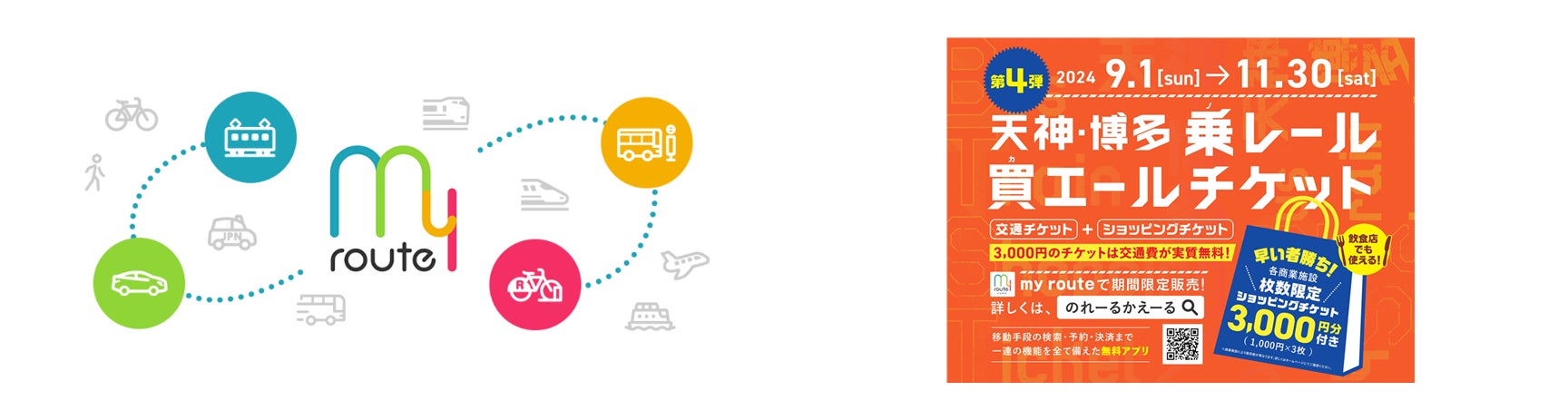 本チケットは、「my route」内で販売を行うため、スマートフォンで手軽にご購入いただけるだけでなく、列車・バスの時刻案内や列車からバスへの乗り換え案内までをスムーズに行うことが出来ます。本チケットの販売を通して、天神・博多エリアの賑わいを創出するとともに、経済活性化に貢献してまいります。