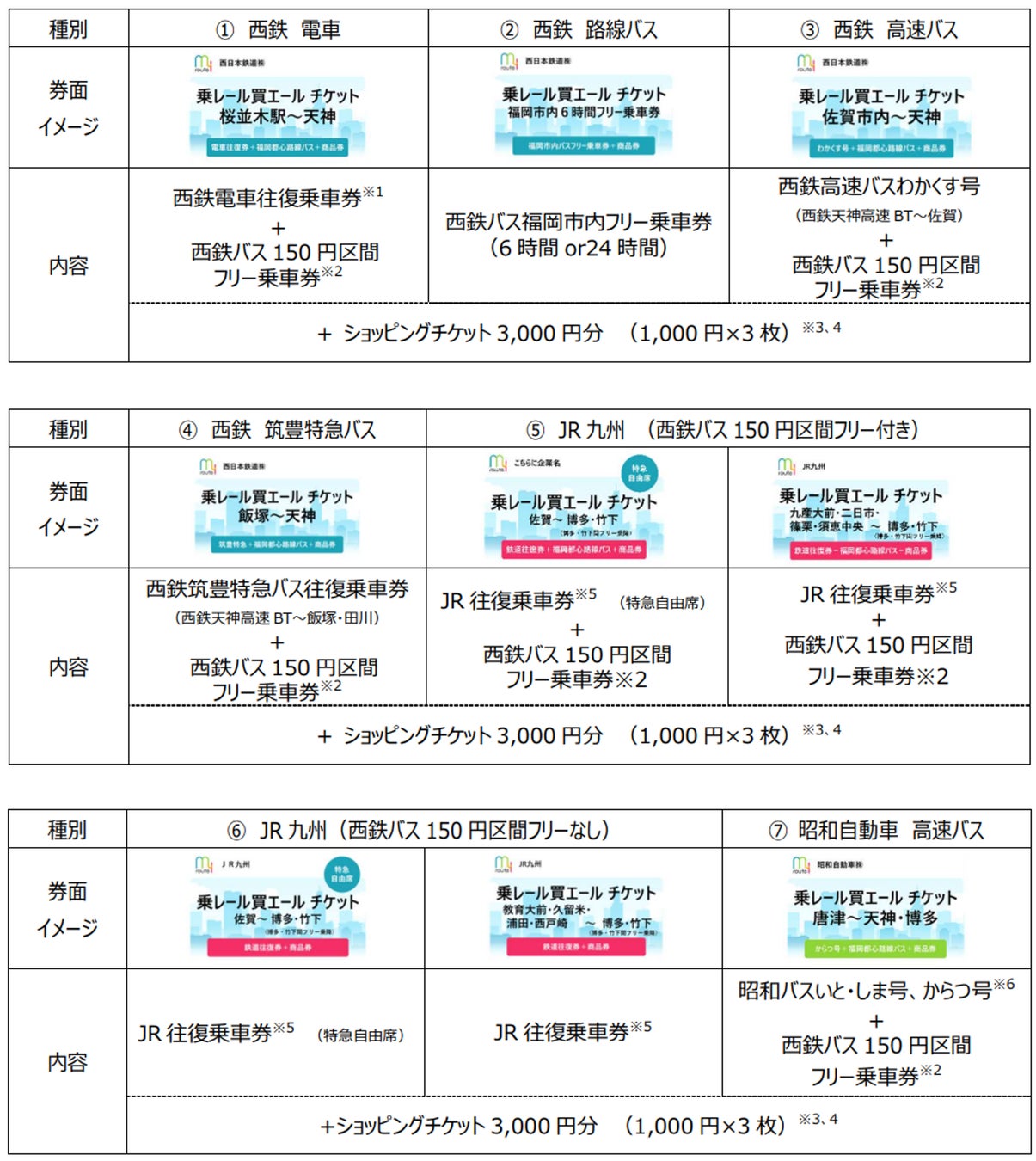 2021年にスタートし、第4弾となる今回は、新たに「三井ショッピングパーク ららぽーと福岡」を追加するとともに、利用者の声を反映し、JRでは北九州地区(門司港・小倉・下曽根)・佐賀駅発着の特急自由席利用を、西鉄バスでは筑豊特急線を新たに設定するなど、利用可能エリアを拡大することで、より利便性が高く、魅力ある商品に生まれ変わりました。