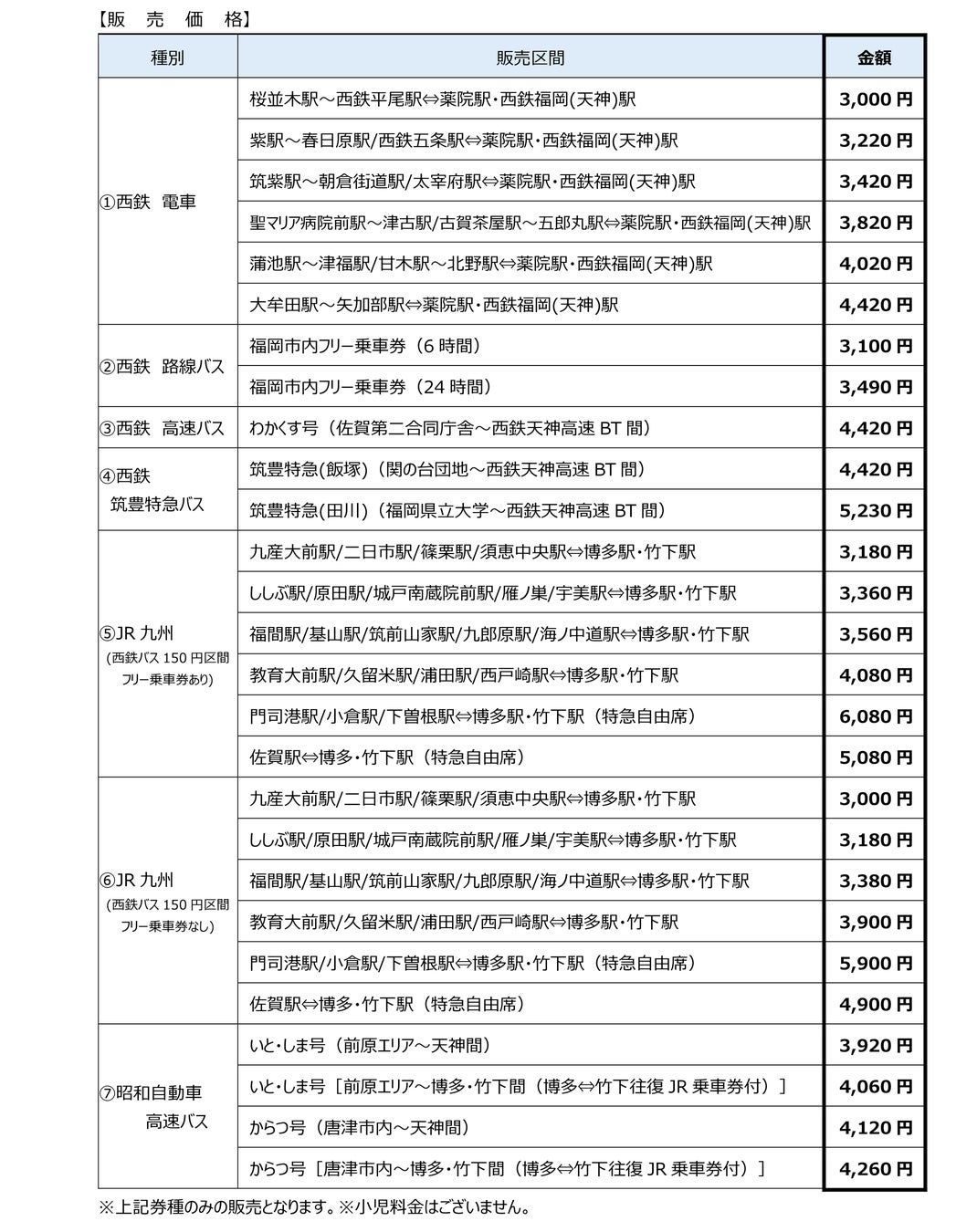 ※2…西鉄バス150円区間フリー乗車券は、天神・博多エリアの「150円区間」のみ乗車可能です。