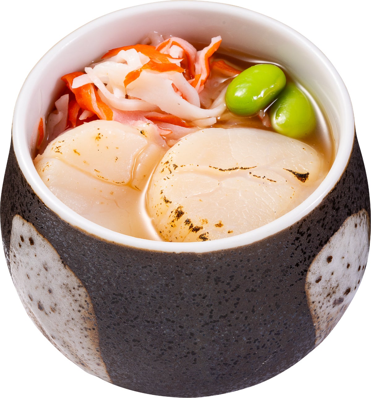 滑らかな舌触りと出汁の効いた茶碗蒸しの味わいに、炙ったほたての香ばしさと甘みが楽しめます。