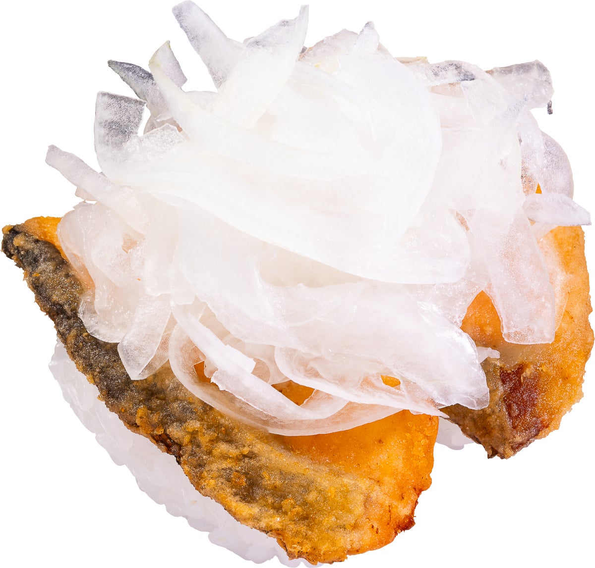 たっぷりオニオンの秋鮭唐揚げにぎり