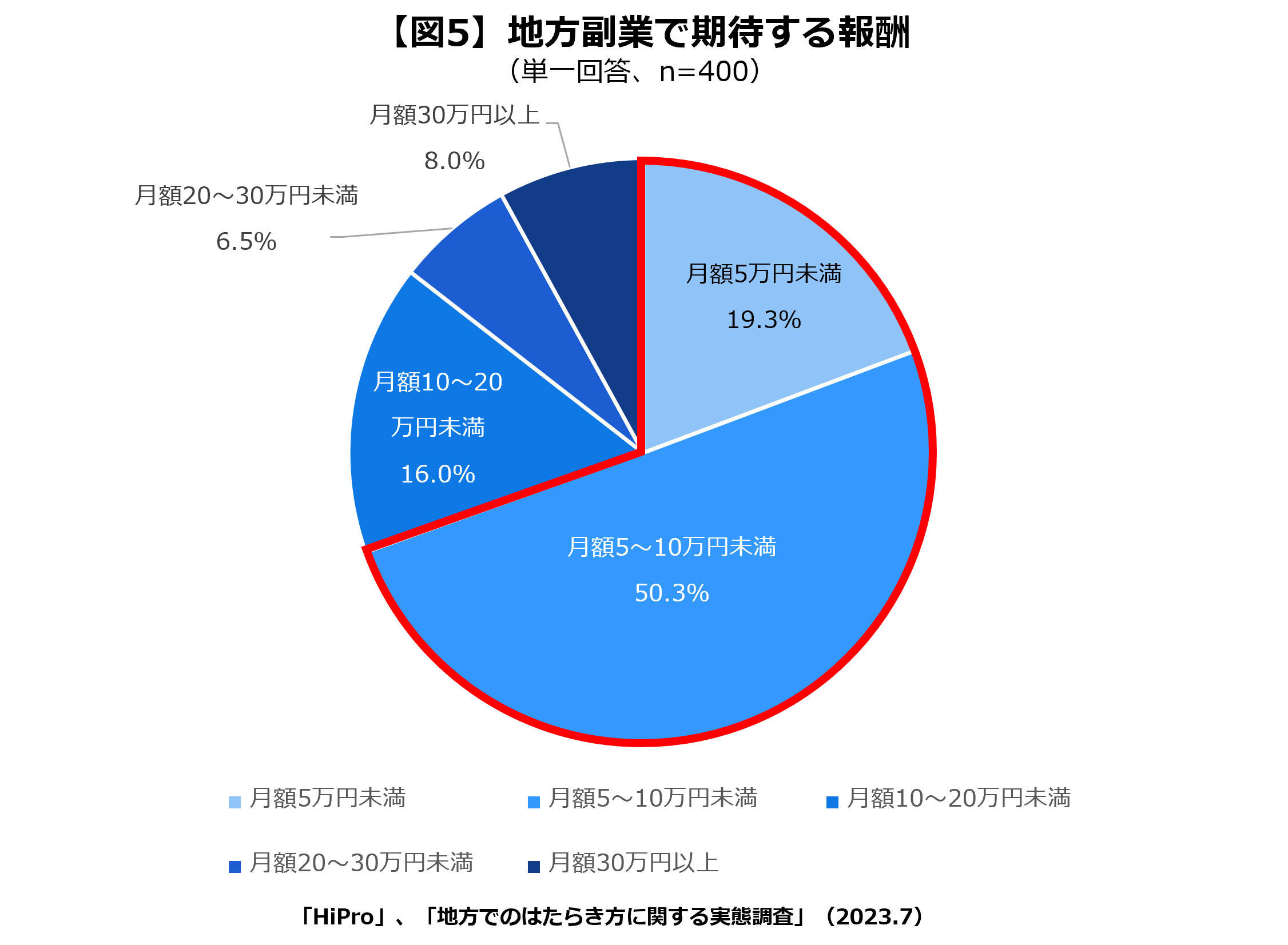 最後に、「地方副業で期待する報酬」を聞いたところ、19.3%が「月額5万円未満」、50.3%が「月額5~10万未満」と回答し、約7割(69.6%)の人が「月額10万円未満」を希望していることが明らかになりました。