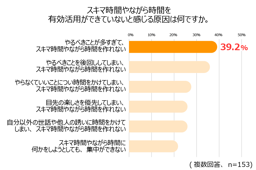 一方で、「やるべきことが多すぎて、スキマ時間やながら時間を作れていない」という悩みも多数。