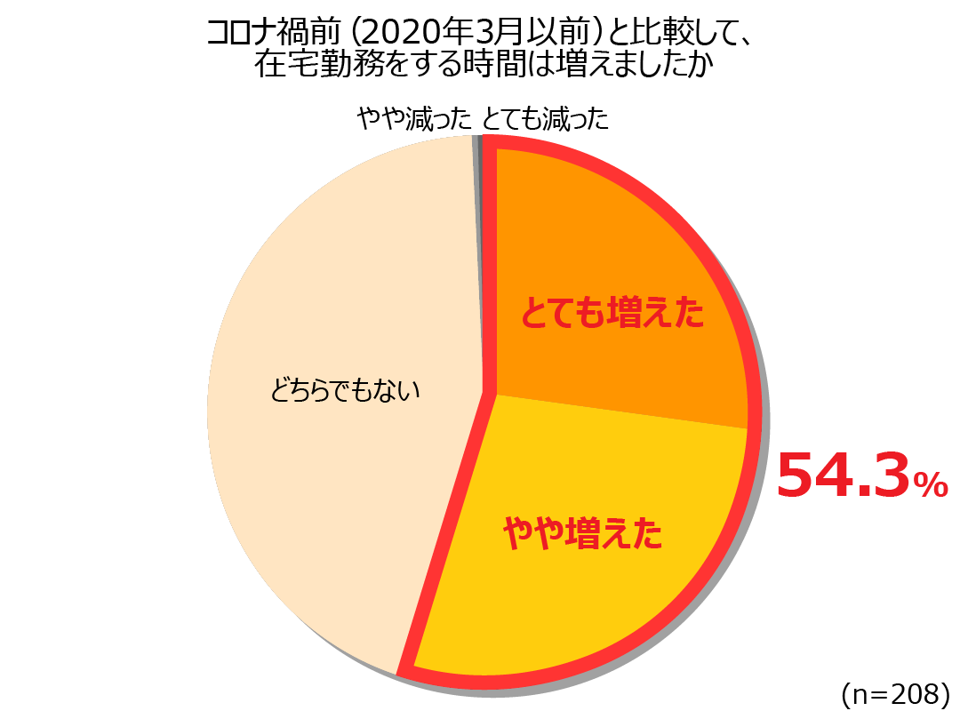 54.3%と大半の方がコロナ禍前より在宅勤務をする時間が増えていますが、35.1%が「在宅勤務をする際に、公私の区切りが十分につけられていない」と感じていることが判明しました。夫婦そろって在宅勤務をすると、なかなかメリハリがつけにくいというお悩みも多いのではないでしょうか。
