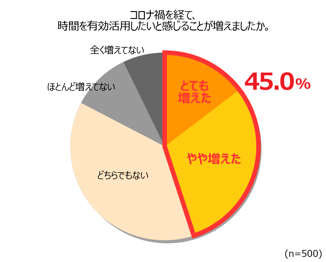 ●「コロナ禍で、時間を有効活用したいと感じるようになった」のは45.0%。
