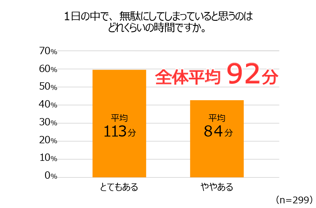 ●59.8%が「無駄にしてしまっている時間がある」と回答。その時間は1日「平均92分」!