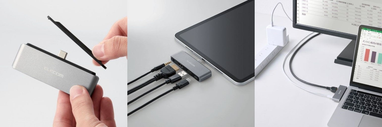 ケーブルレス設計で持ち運びに便利!USB-Cポートを4種類のポートに変換する直挿しドッキングステーションを新発売