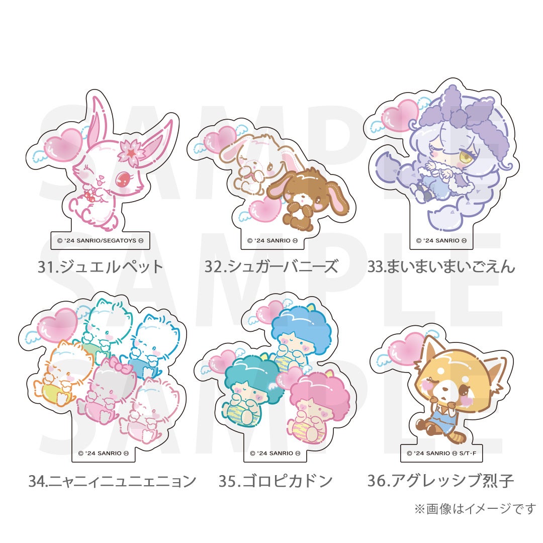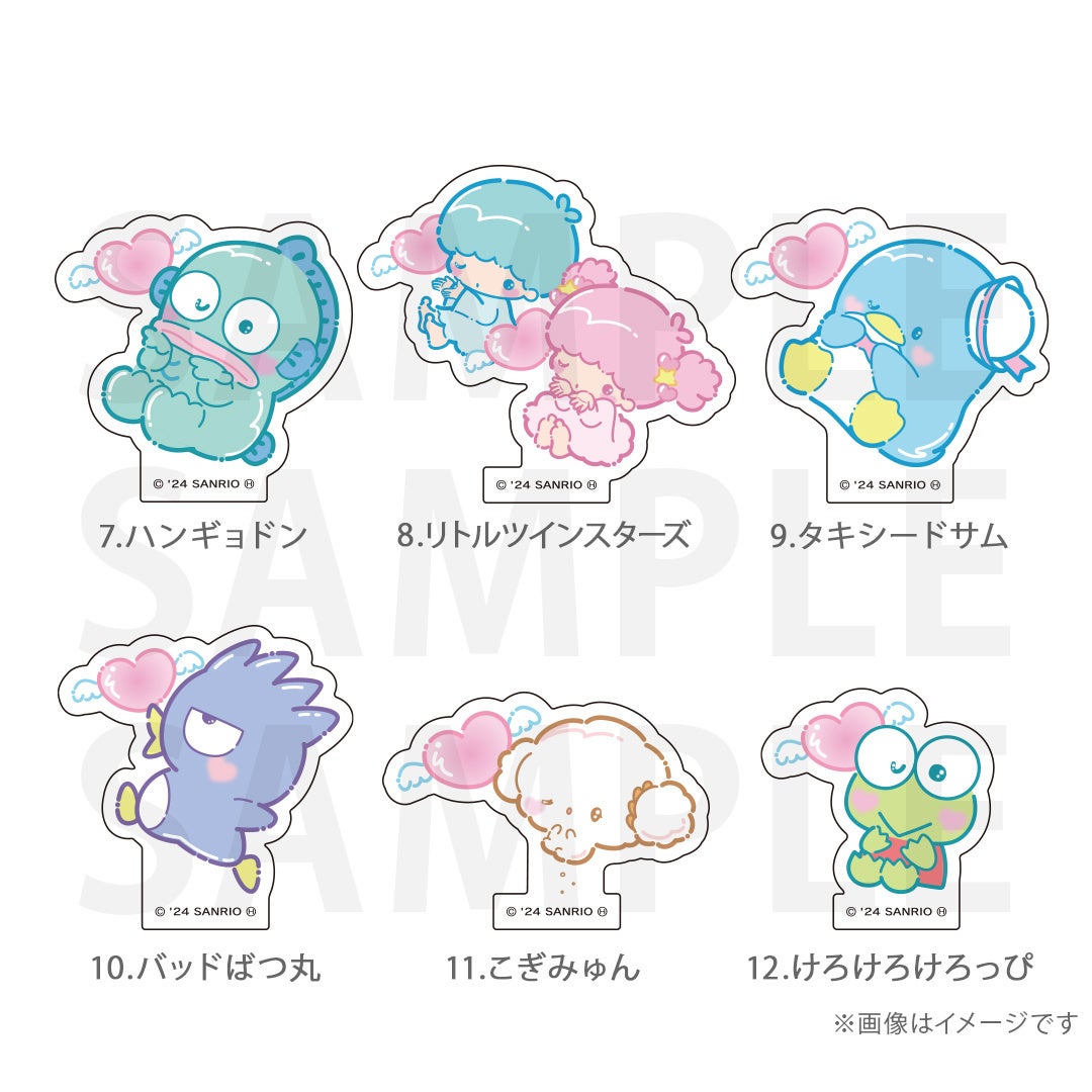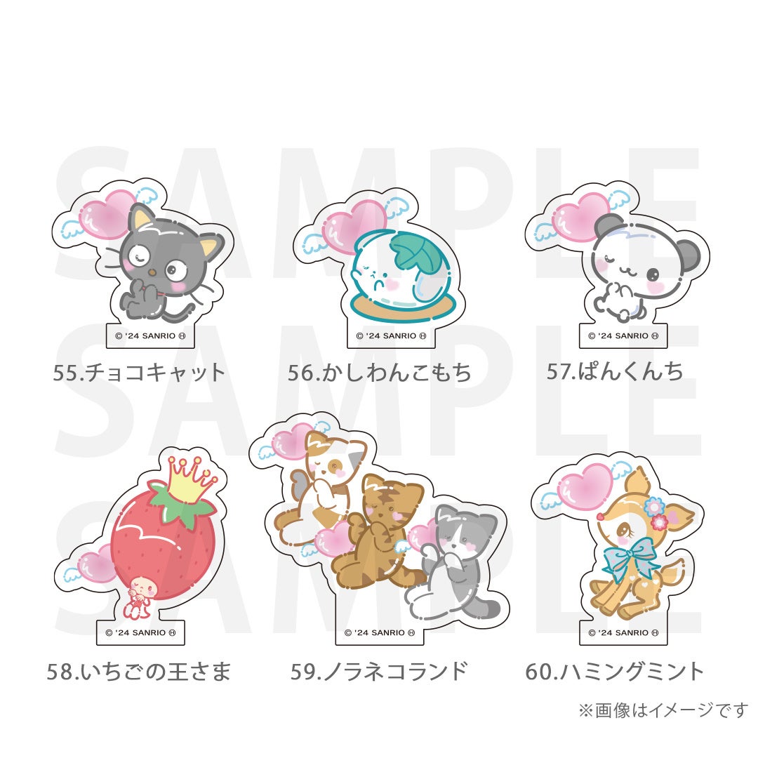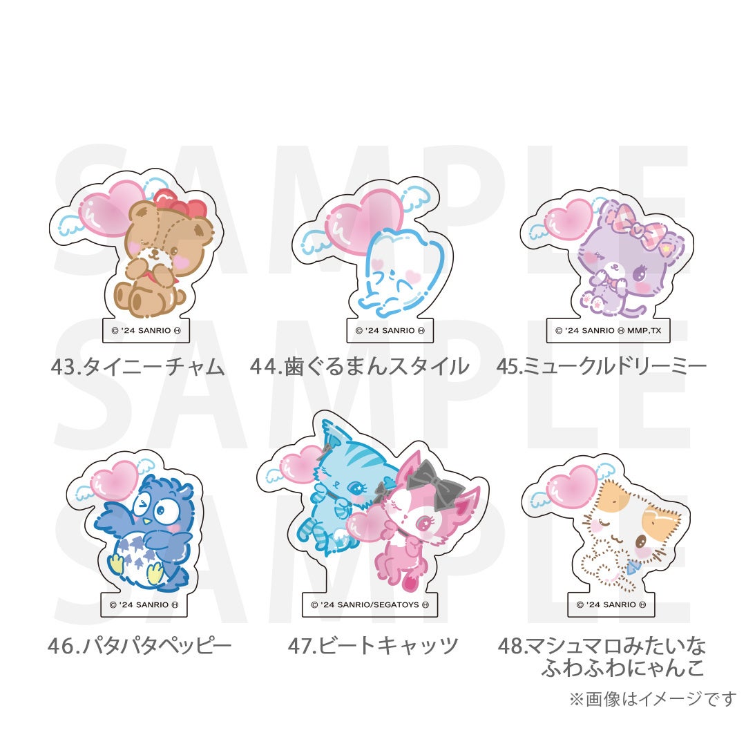 シナモロール、ポムポムプリン、クロミ、ポチャッコ、ハローキティ、マイメロディ、ハンギョドン、リトルツインスターズ、タキシードサム、バッドばつ丸、こぎみゅん、けろけろけろっぴ、ぐでたま、ウィッシュミーメル、あひるのペックル、KIRIMIちゃん.、マイスウィートピアノ、SHOW BY ROCK‼、コロコロクリリン、yoshikitty、まるもふびより、ウサハナ、がおぱわるぅ、かぶきにゃんたろう、マロンクリーム、みんなのたあ坊、ルロロマニック、ディアダニエル、チャーミーキティ、ハローミミィ、ジュエルペット、シュガーバニーズ、まいまいまいごえん、ニャニィニュニェニョン、ゴロピカドン、アグレッシブ烈子、おさるのもんきち、ぼんぼんりぼん、リトルフォレストフェロォ、パティ&ジミー、チアリーチャム、ぽっきょくてん、タイニーチャム、歯ぐるまんスタイル、ミュークルドリーミー、パタパタペッピー、ビートキャッツ、マシュマロみたいなふわふわにゃんこ、パウピポ、ザシキブタ、アドローザトルマリィ、ウメ屋雑貨店、フレッシュパンチ、リルリルフェアリル、チョコキャット、かしわんこもち、ぱんくんち、いちごの王さま、ノラネコランド、ハミングミント、イチゴマン、カリバディクス、ぽこぽん日記、ザ ボードビルディオ、くすりの福太郎、ぼさにまる、メローチューン、シンカイゾク、るるる学園、てのりくま、ウィンキーピンキー、プワワ、クマミレン、シュガーメヌエット、ザラナバウツ、リスル、セブンシリードワーフ、タイニーポエム、たらいぐまのらんどりー、ニョッキ&ペンネ、パンナピッタ、ボタンノーズ、スポーティングベアーズ、リトルラヴィン、バニー&マッティ、ミスターベアーズドリーム、ウィアーダイナソアーズ!、ぺたぺたみにりあん、BUDDYEDDY、はなまるおばけ