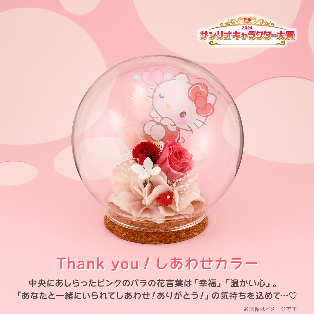 「2024年サンリオキャラクター大賞」への投票は、選んだキャラクターのフラワードームを1点購入で、12票分が加算されます。
