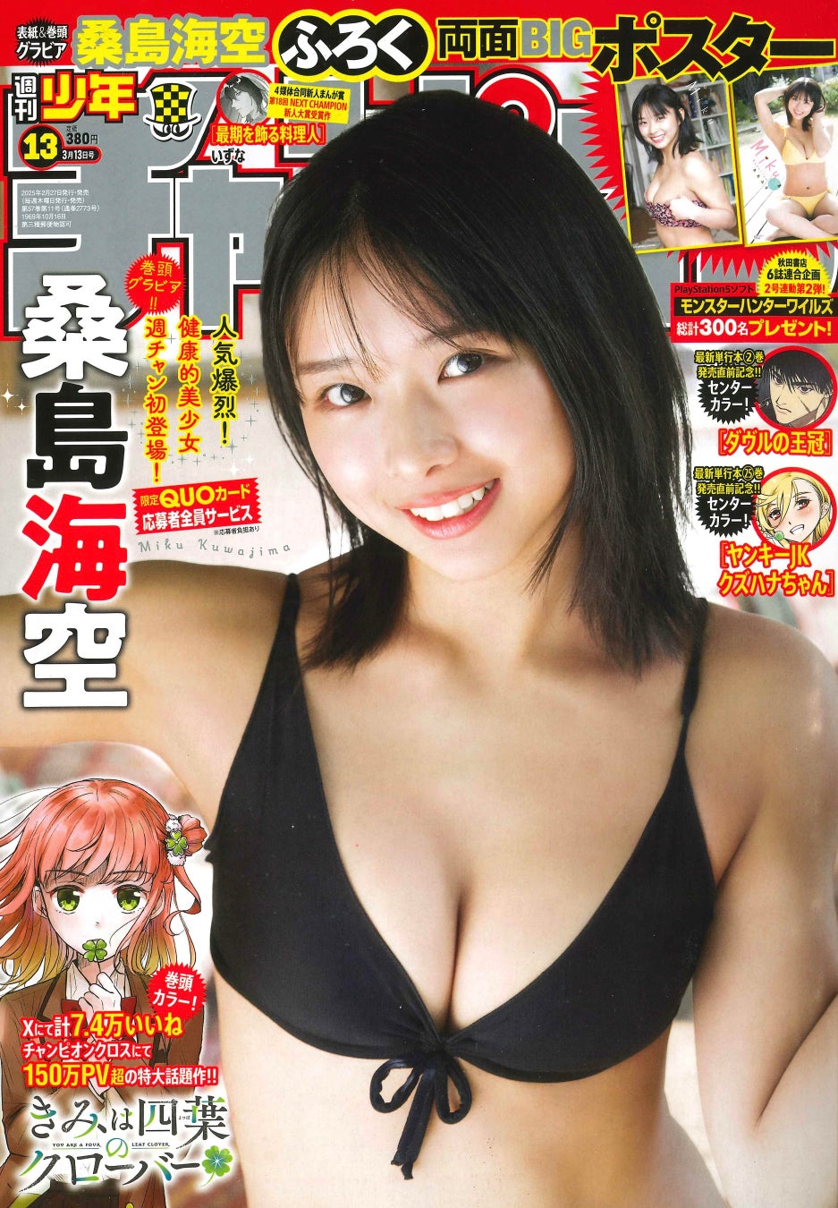株式会社秋田書店(所在地:東京都文京区、代表取締役社長:山口徳二)は、発行している週刊少年漫画誌『週刊少年チャンピオン』(編集長:松山英生)2月27日(木)発売の13号にて、表紙&巻頭グラビアに桑島海空さんが登場することをお知らせいたします。両面BIGポスター付録&限定QUOカード応募者全員サービス企画も実施いたします。