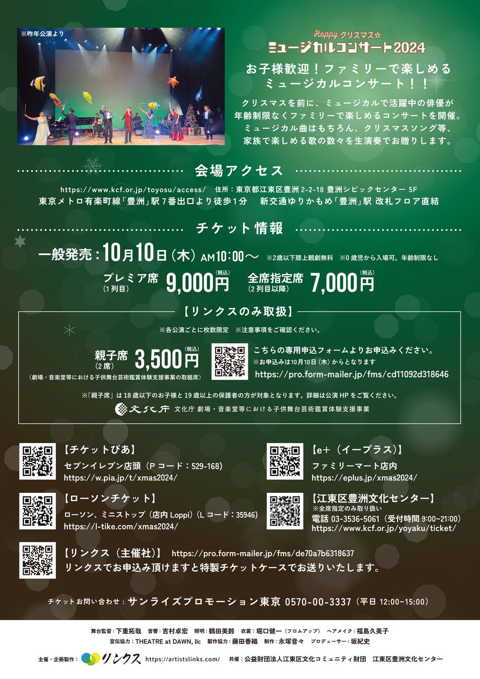 樋口麻美、津田英佑、音くり寿、若松渓太、日和歩乃、冨川智加、井坂茜、松永一哉出演お子様連れファミリー歓迎の本格ミュージカルコンサート『Happyクリスマス☆ミュージカルコンサート2024』開催のご案内