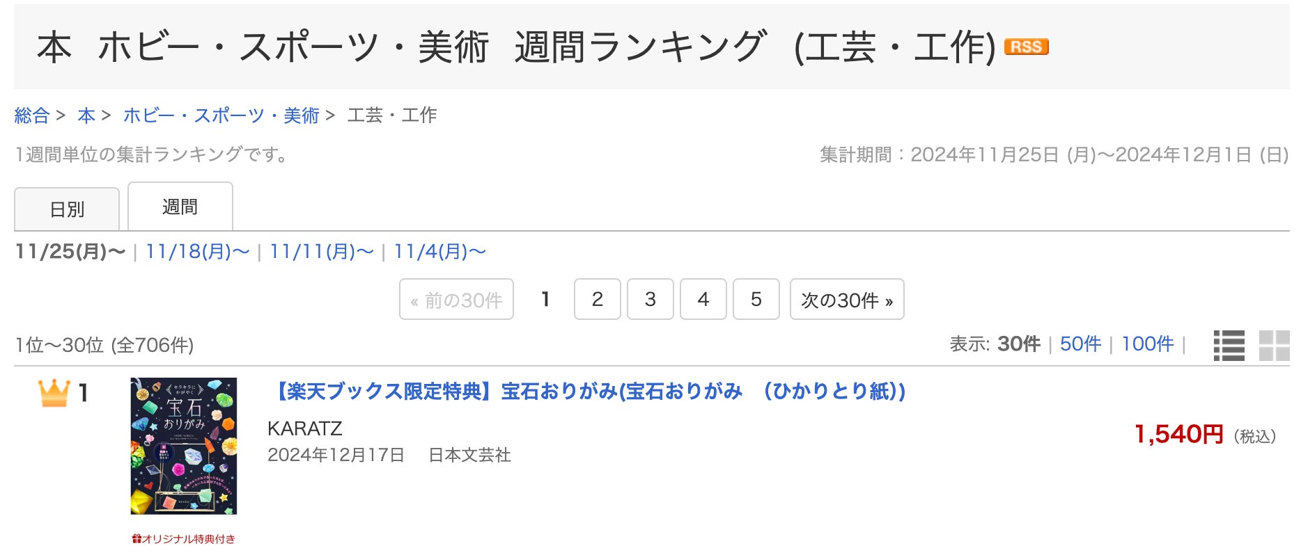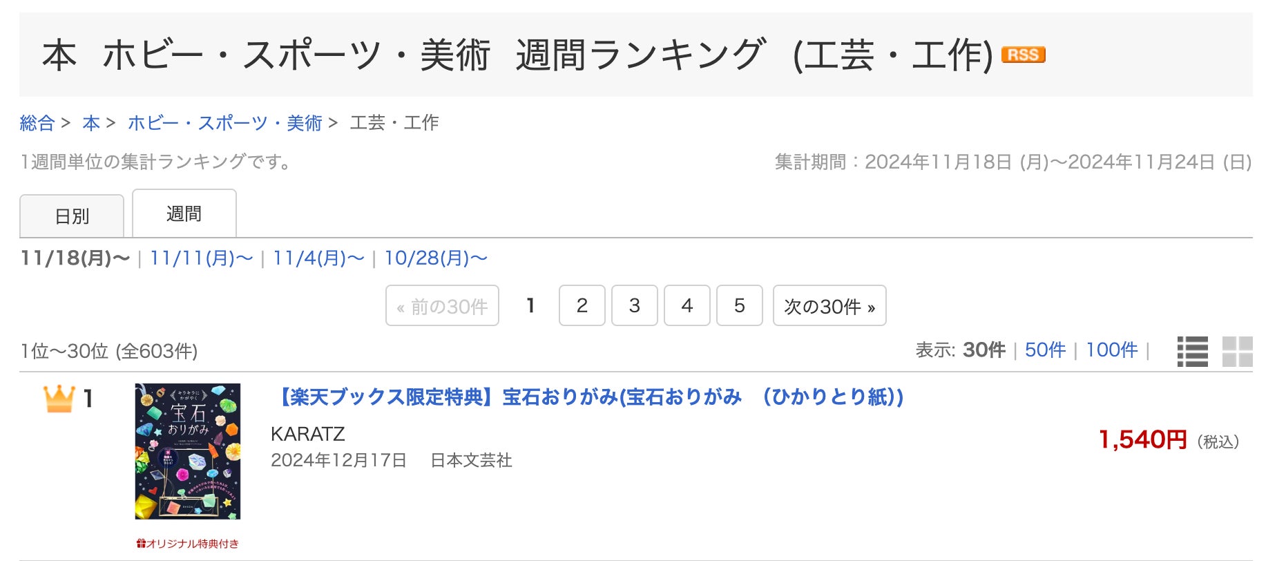 ★楽天ブックス週間ランキング(工芸・工作部門)で1位を獲得しました!(2024.11.18~12.1)