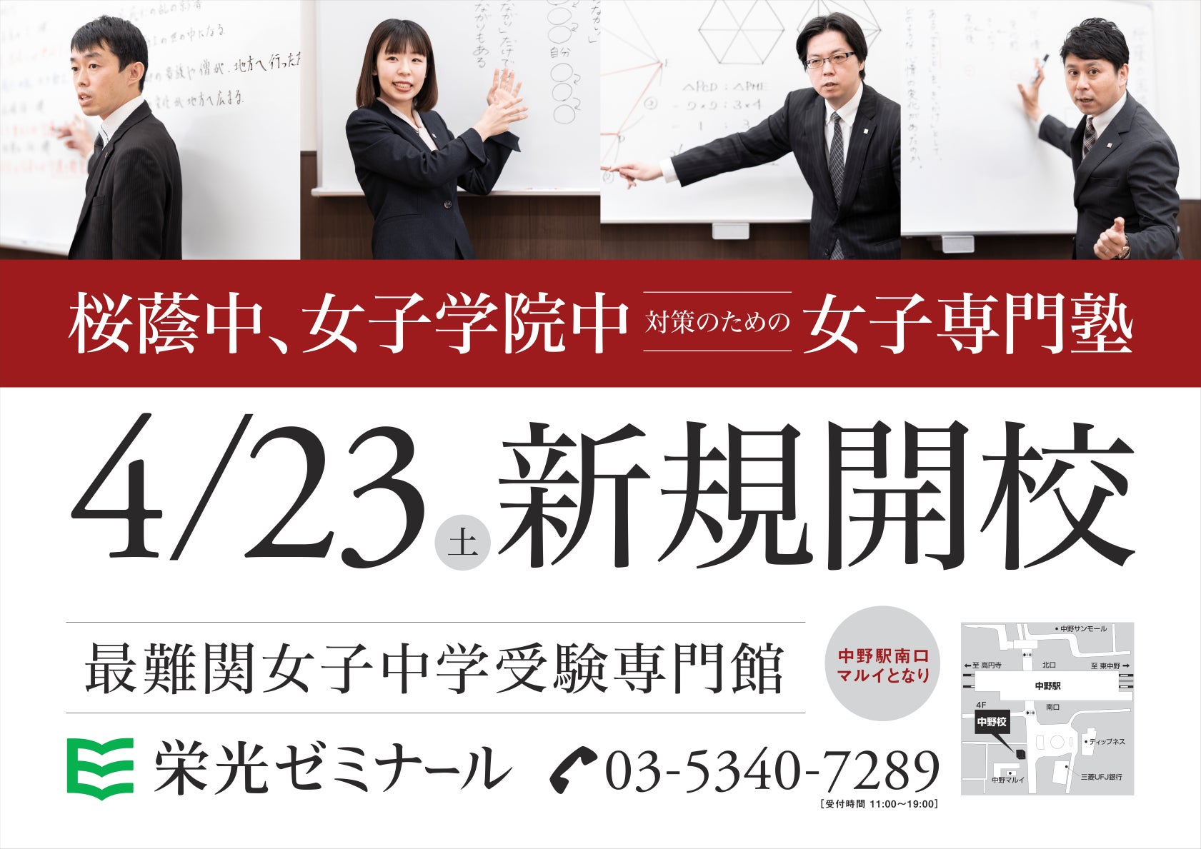 ※「栄光ゼミナール中野校 最難関女子中学受験専門館」専用の内容です。通常の栄光ゼミナールとは、受講料やカリキュラム、キャンペーン等が異なります。