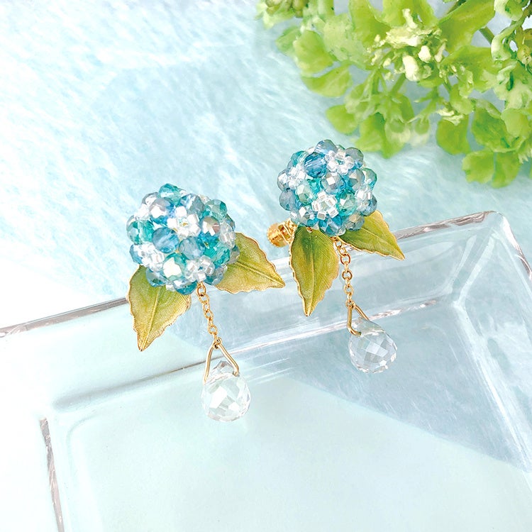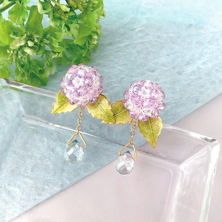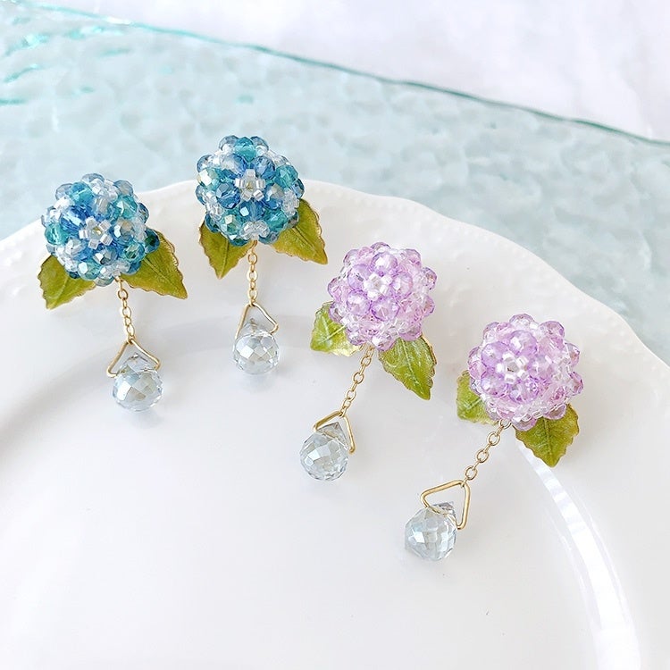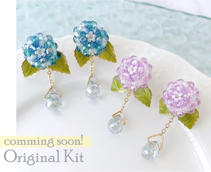 今回は材料セット「レイニーイヤリング」と、オリジナルキット「あじさいのイヤリング」が発売されました。